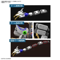 Le kit est également complété par ses armes et équipements d’origine, dont son Dragon Fang équipé sur son bras droit qui peut également être étendu pour un combat à moyenne distance à l’aide de son système de bras segmenté. Il est également livré avec son glaive à faisceau et son bouclier.