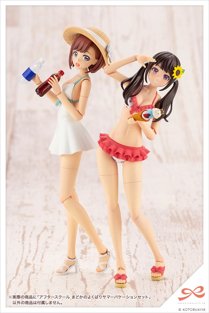 Madoka Yuki et les autres figurines “Sousai Shojo Teien” de Kotobukiya peuvent profiter encore plus des vacances d’été grâce à cet ensemble d’accessoires amusants ! Un parfait, un soda et un cornet de glace sont inclus, ainsi que trois bouteilles de boisson en PET. Deux expressions faciales nouvellement sculptées (prépeintes et non peintes) pour Madoka sont incluses : un sourire et un visage embarrassé. Il y a un ballon de plage (avec un port de 3 mm pour qu’il puisse être monté sur une base volante), et une chaise longue pour quand il est temps de se détendre ; le dossier de la chaise longue peut être ajusté dans trois positions différentes ! Il y a même une mascotte mignonne qui s’assoit sur le cône de crème glacée, et une version “tombée” aussi ! Préparez-vous à vous amuser pendant l’été et commandez le vôtre dès aujourd’hui !